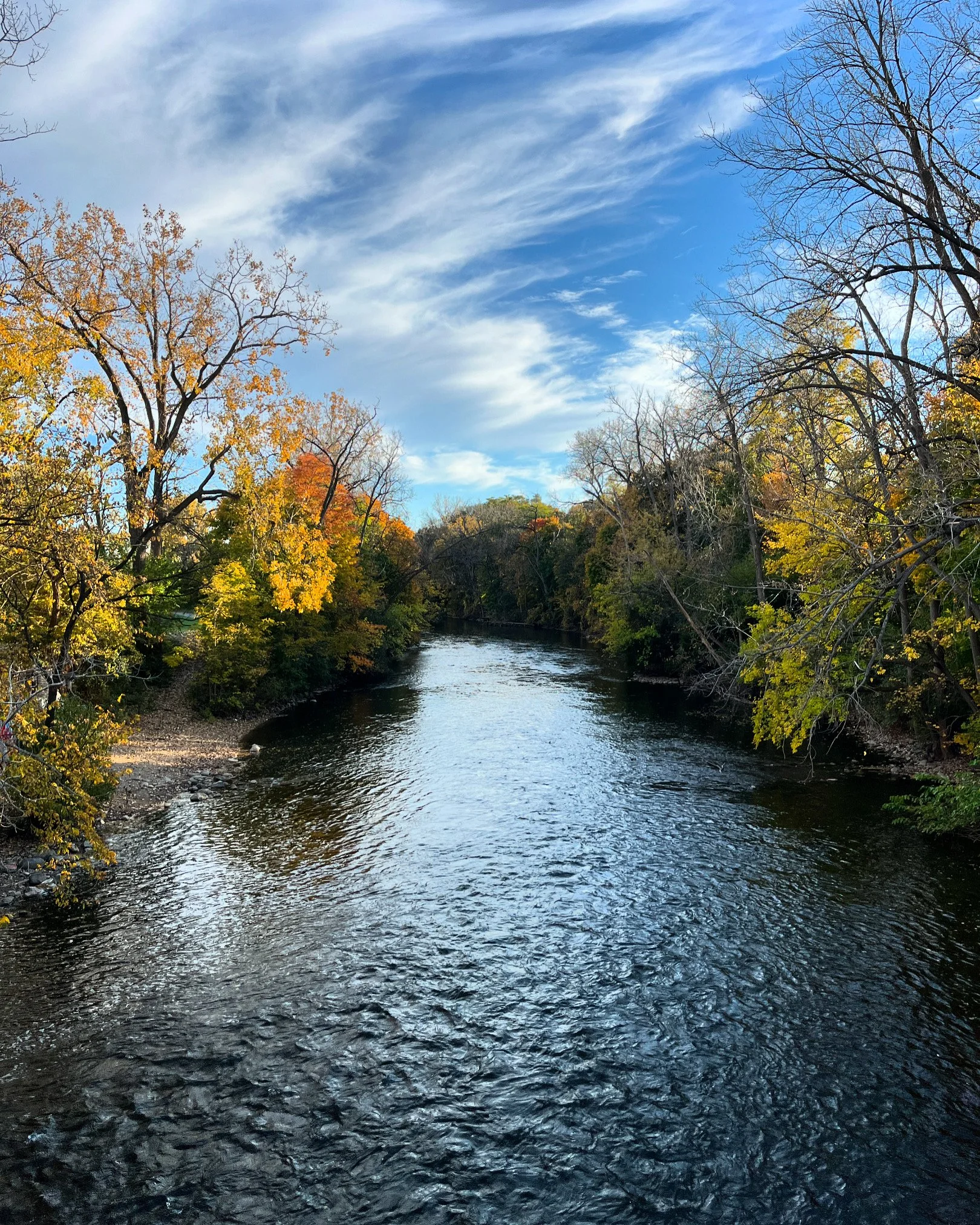 After class I turn on WCBN and drive home with the windows down. The DJ is playing some gloomy slowcore track that suits my mood. I give Islay a meandering walk, then take myself up to the bar where I sit by the window with my laptop and work on a school project. A musician friend stops in for a beer and we chat for a while about all the work that goes into preparing an indie record for release. The two drinks soften my edges and predictably, I emancipate most of the cash in my wallet. After the bar, I head across the alley to the pet store and buy a trout squeaky toy. Feeling more buoyant on the walk home, I pause on the Forest Street Bridge to watch the Huron charge down the corridor of trees past Frog Island. It's right downtown, but if you stand just so and squint, no urban landmarks are visible. What a joy to have this view so close to my house. Despite the canceled show, I've rescued my night from the jaws of despair. Echoing Mr. Candy Corn and his plucky self love, I think to myself "Well I like me."